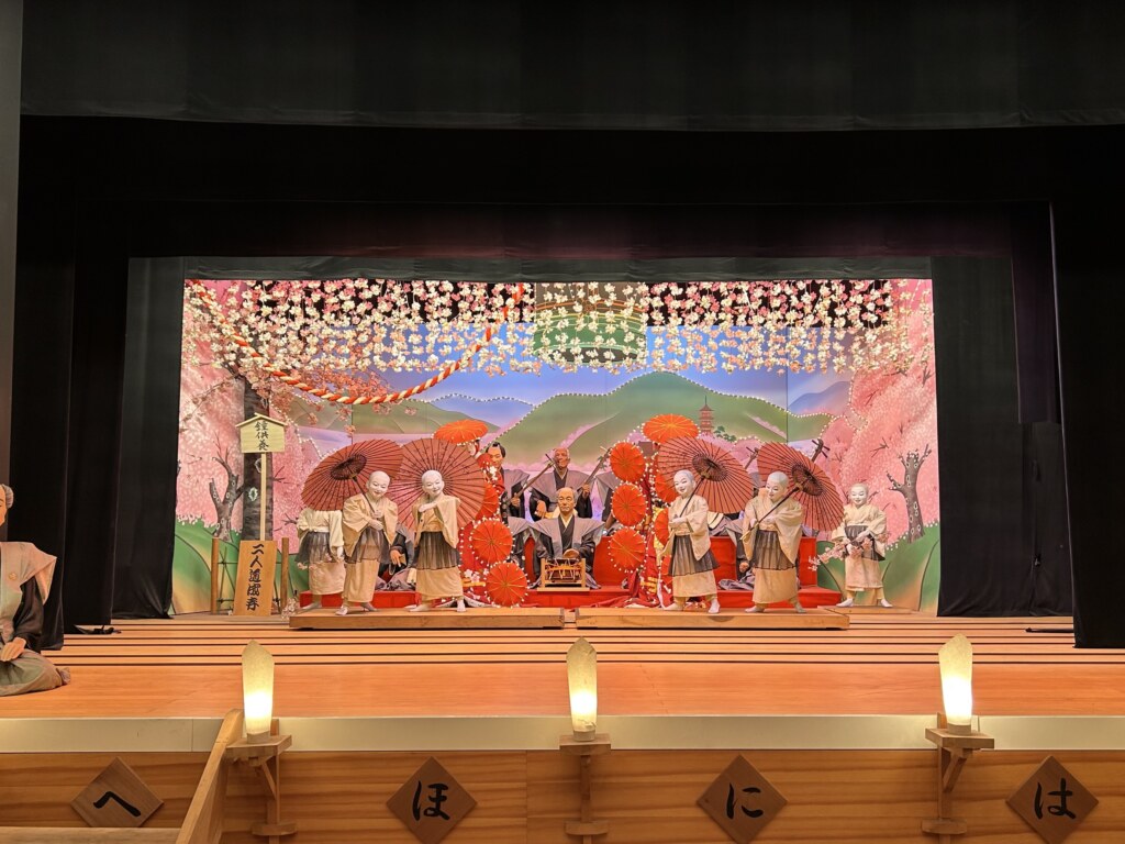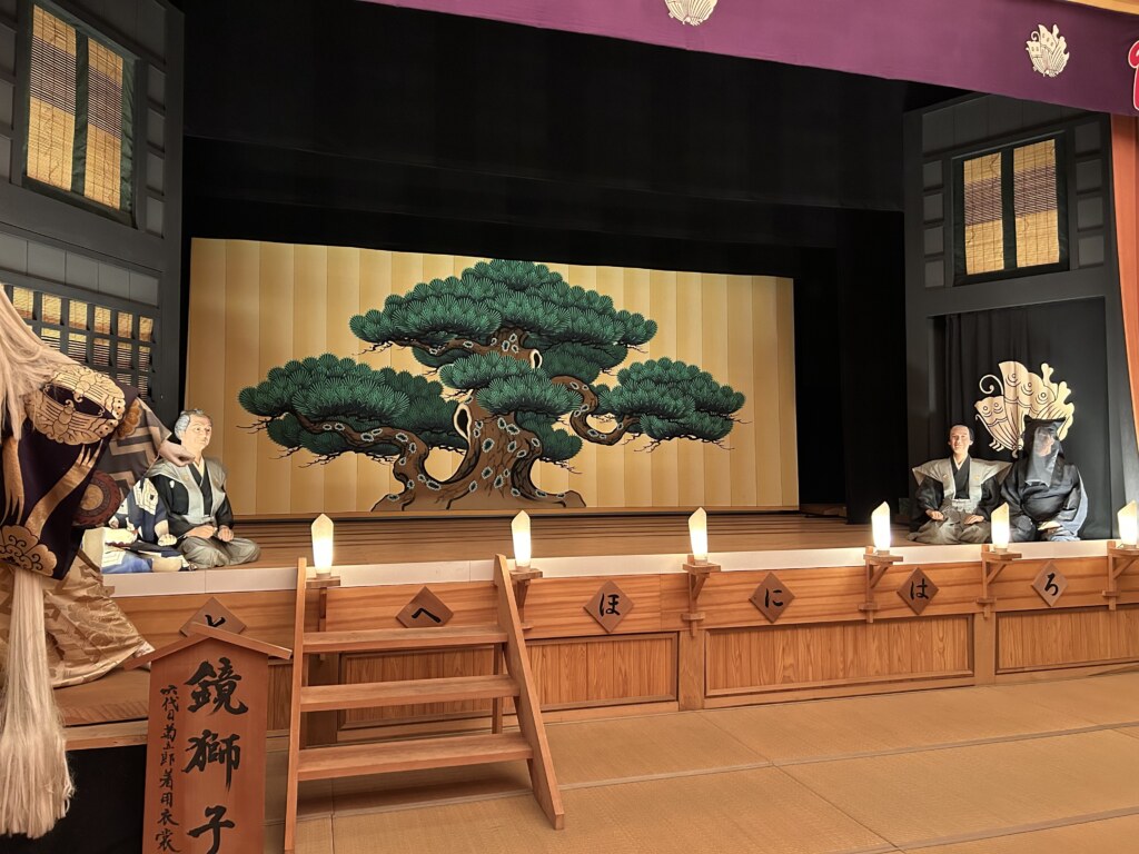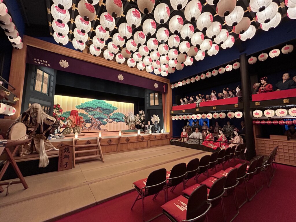 2階は歌舞伎小屋を再現して作ってあり、江戸時代にタイムスリップしたような空間となっています。(入場料500円)歌舞伎好きの先代オーナーの心の粋とユーモアが偲ばれる舞台には仕掛けがあり、次々と変わる歌舞伎の場面をナレーション付きで楽しむことができます。また、100体近くの等身大の人形が設置されており、1体1体表情や筋肉の動きなど細かいところまで本物のように作られています。もしかしたら自分に似た人形がみつかるかも…!?